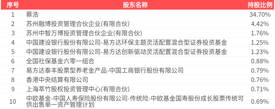 公司股东户数为8686户,前十大股东持股数量为1.03亿股,占总股本比例为47.19%,前十大股东持股情况如下: