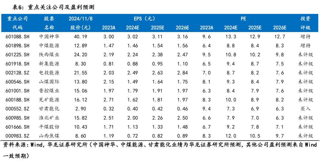 投资建议:稳健的资产和充足的现金流是煤炭企业持续高分红的保障,长期配置性价比不变,维持行业“推荐”评级,建议关注1)高分红稳盈利优质龙头:中国神华(601088.SH)、中煤能源(601898.SH)、陕西煤业(601225.SH);2)煤电一体平抑价格波动公司:新集能源(601918.SH)、电投能源(002128.SZ);3)高弹性高成长:山煤国际(600546.SH)、晋控煤业(601001.SH);4)估值较低且具备增量公司:兖矿能源(600188.SH)、甘肃能化(000552.SZ);5)主焦占比较高有望超跌反弹公司:淮北矿业(600985.SH)、平煤股份(601666.SH)、山西焦煤(000983.SZ)。