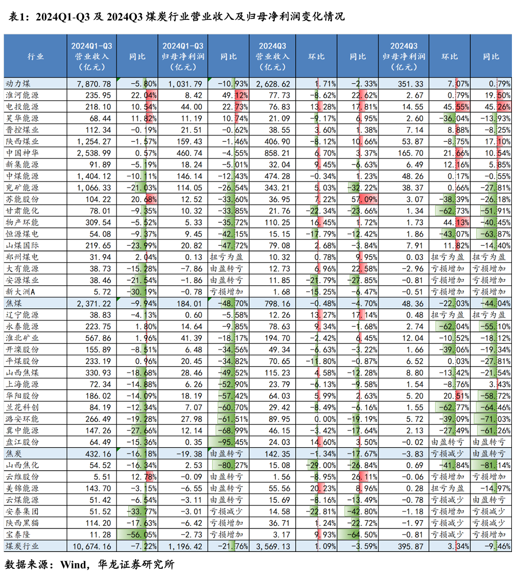 本文摘自报告:《煤炭行业2024年三季报综述:动力煤环比盈利改善,焦煤承压静待拐点》