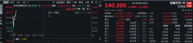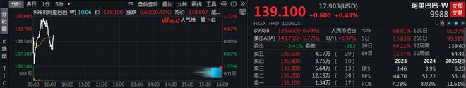 个股方面,阿里巴巴股价短线拉涨,涨超1%,现涨幅缩窄。消息面上,阿里巴巴集团CEO吴泳铭在今日宣布,未来三年,阿里将投入超过3800亿元,用于建设云和AI硬件基础设施,总额超过去十年总和。
