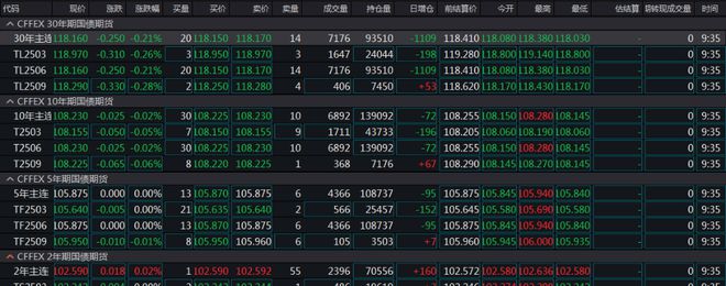 30年期主力合约跌0.28%,10年期主力合约跌0.1%,5年期主力合约跌0.03%,2年期主力合约涨0.01%。