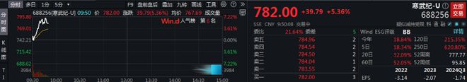个股方面,寒武纪涨逾6%,股价创历史新高。