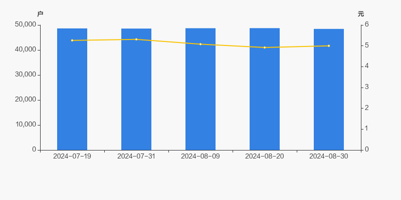 2024年7月19日至今,公司股东户数有所下降,区间跌幅为0.42%。2024年7月19日至2024年8月30日区间股价下降4.94%。