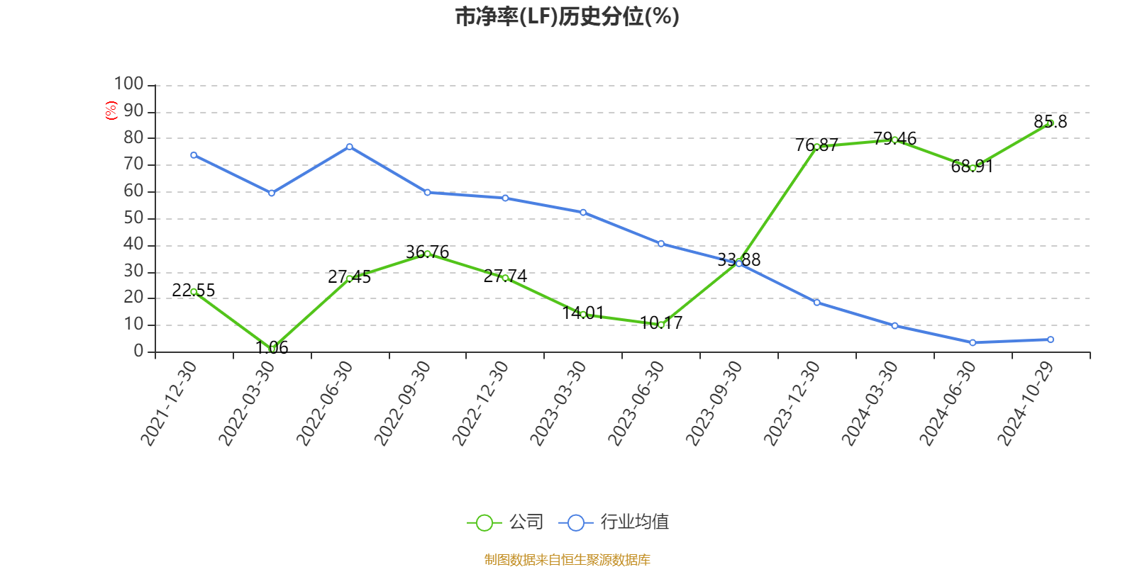 市盈率、市净率为负时,不显示当期分位数,会导致折线图中断。