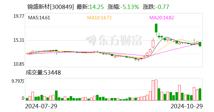 以10月29日收盘价计算,锦盛新材目前市盈率(TTM)约为-358.96倍,市净率(LF)约3.43倍,市销率(TTM)约6.3倍。