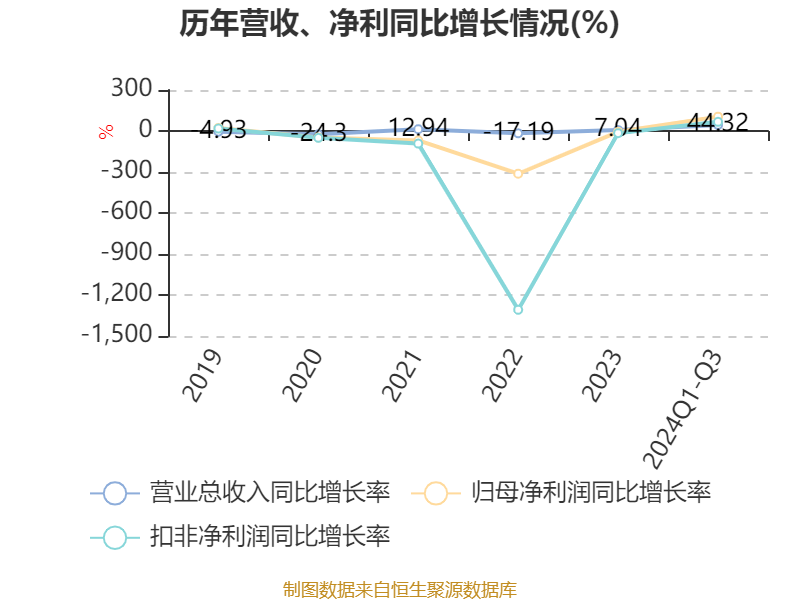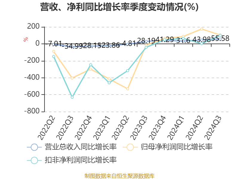 资产重大变化方面,截至2024年三季度末,公司固定资产较上年末增加48.99%,占公司总资产比重上升18.8个百分点;在建工程合计较上年末减少99.62%,占公司总资产比重下降16.54个百分点;交易性金融资产合计较上年末减少67.12%,占公司总资产比重下降11.82个百分点;货币资金较上年末增加28.88%,占公司总资产比重上升3.74个百分点。