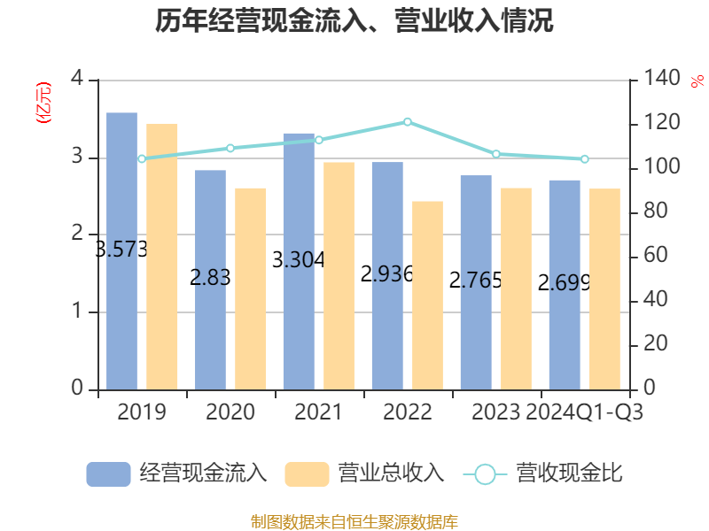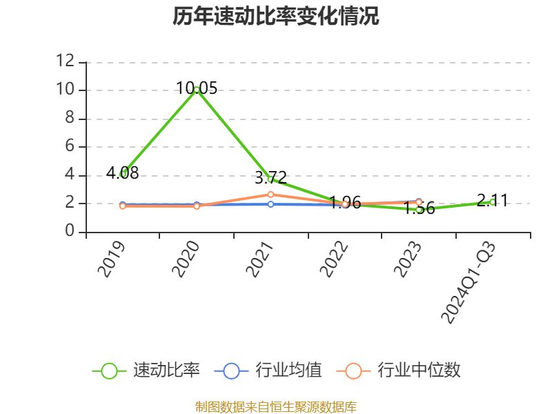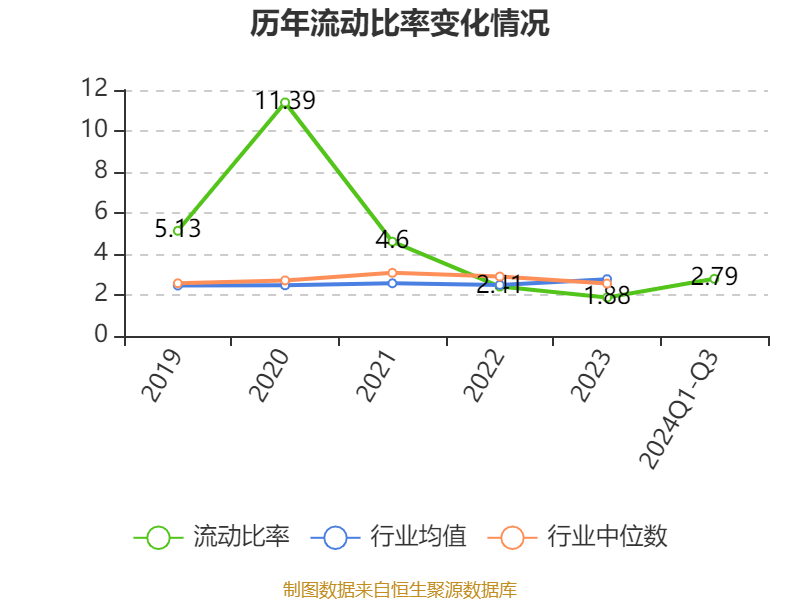 2024年前三季度,公司流动比率为2.79,速动比率为2.11。