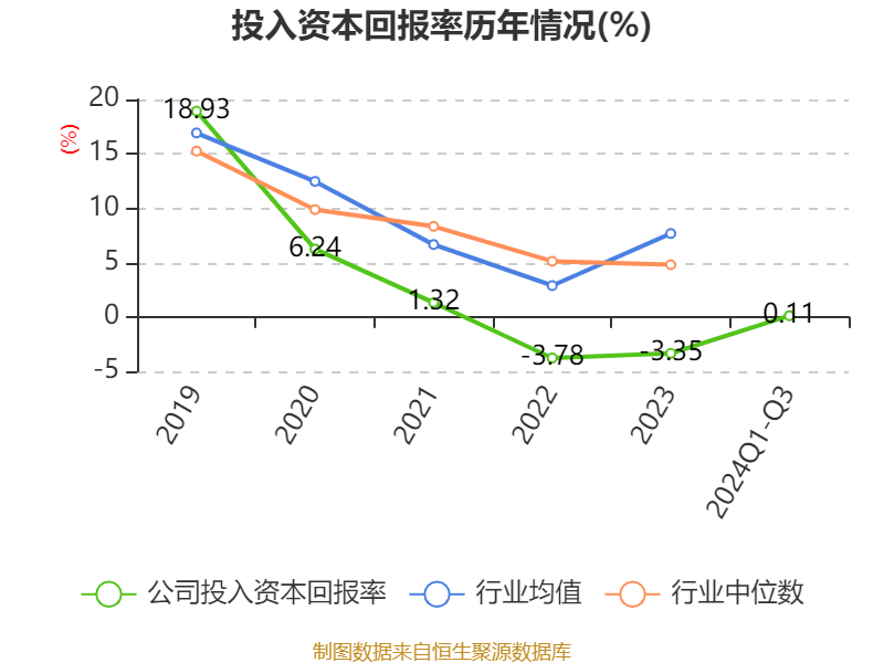 盈利能力方面, 2024年前三季度公司加权平均净资产收益率为0.14%,同比上升2.82个百分点。公司2024年前三季度投入资本回报率为0.11%,较上年同期上升2.46个百分点。