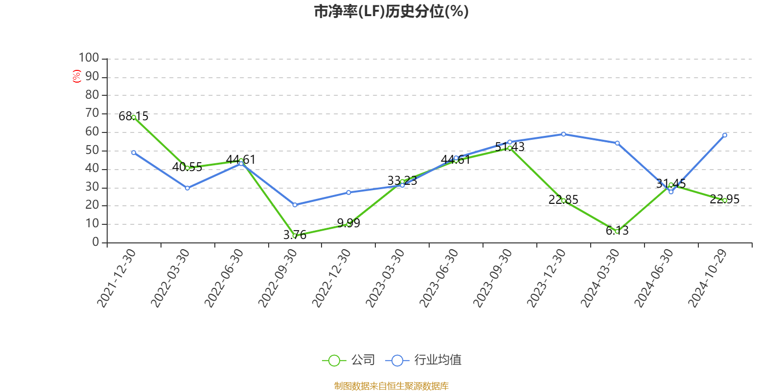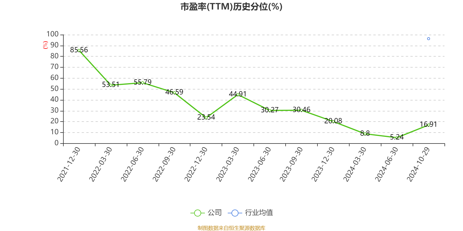 市盈率、市净率为负时,不显示当期分位数,会导致折线图中断。