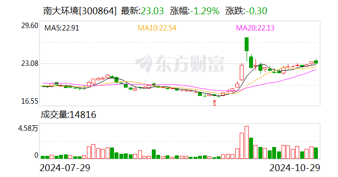 以10月29日收盘价计算,南大环境目前市盈率(TTM)约为21.37倍,市净率(LF)约2.82倍,市销率(TTM)约4.42倍。