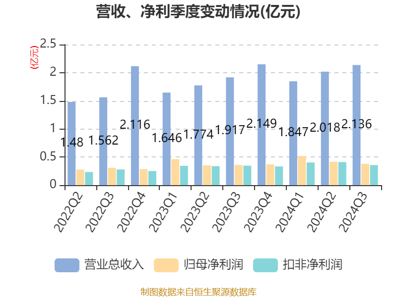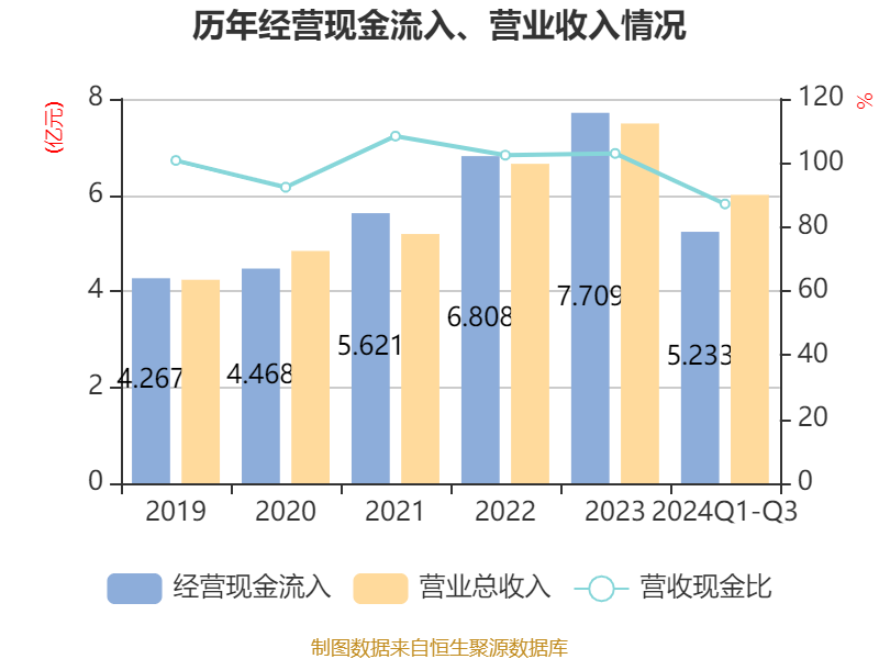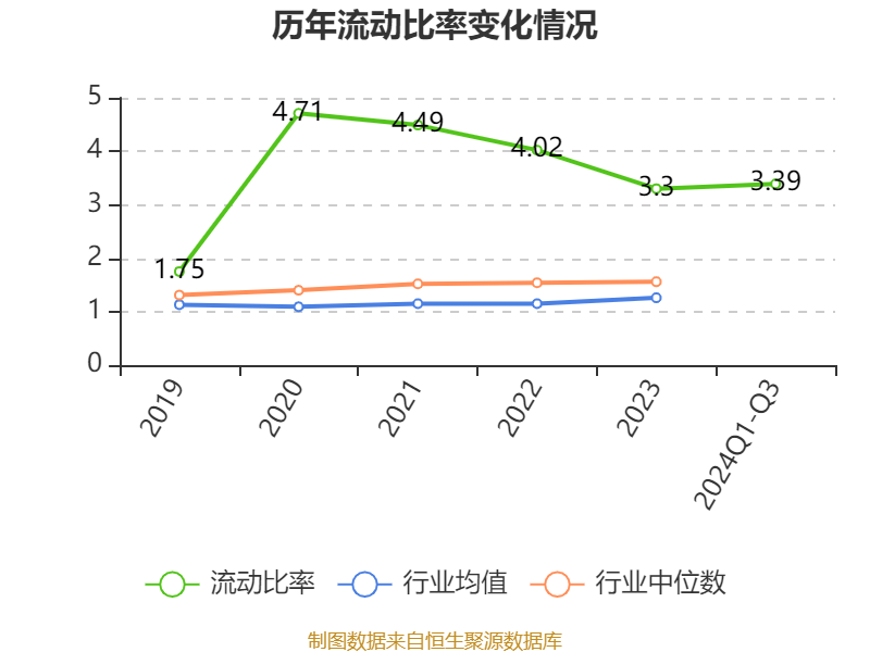 2024年前三季度,公司流动比率为3.39,速动比率为3.36。
