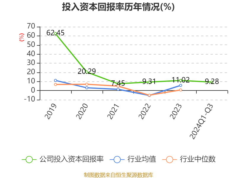 盈利能力方面, 2024年前三季度公司加权平均净资产收益率为10.47%,同比上升0.59个百分点。公司2024年前三季度投入资本回报率为9.28%,较上年同期上升0.86个百分点。
