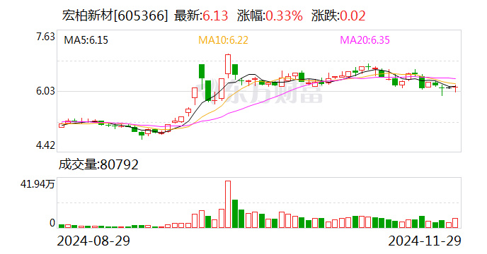 2024年前三季度,宏柏新材实现收入10.65亿元,归母净利润-1406万元。