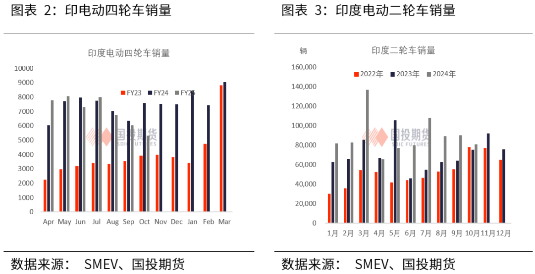 出于减少对于化石能源的依赖和保护环境的目的,印度于2015年制定了FAME计划,以促进印度采用电动或混合动力汽车。在FAME-I和FAME-II (《混合动力车和电动汽车的快速采用和制造计划》)的补贴鼓励下,2023财年汽车的电动化率迈过2%,二轮车的电动化率5.2%。