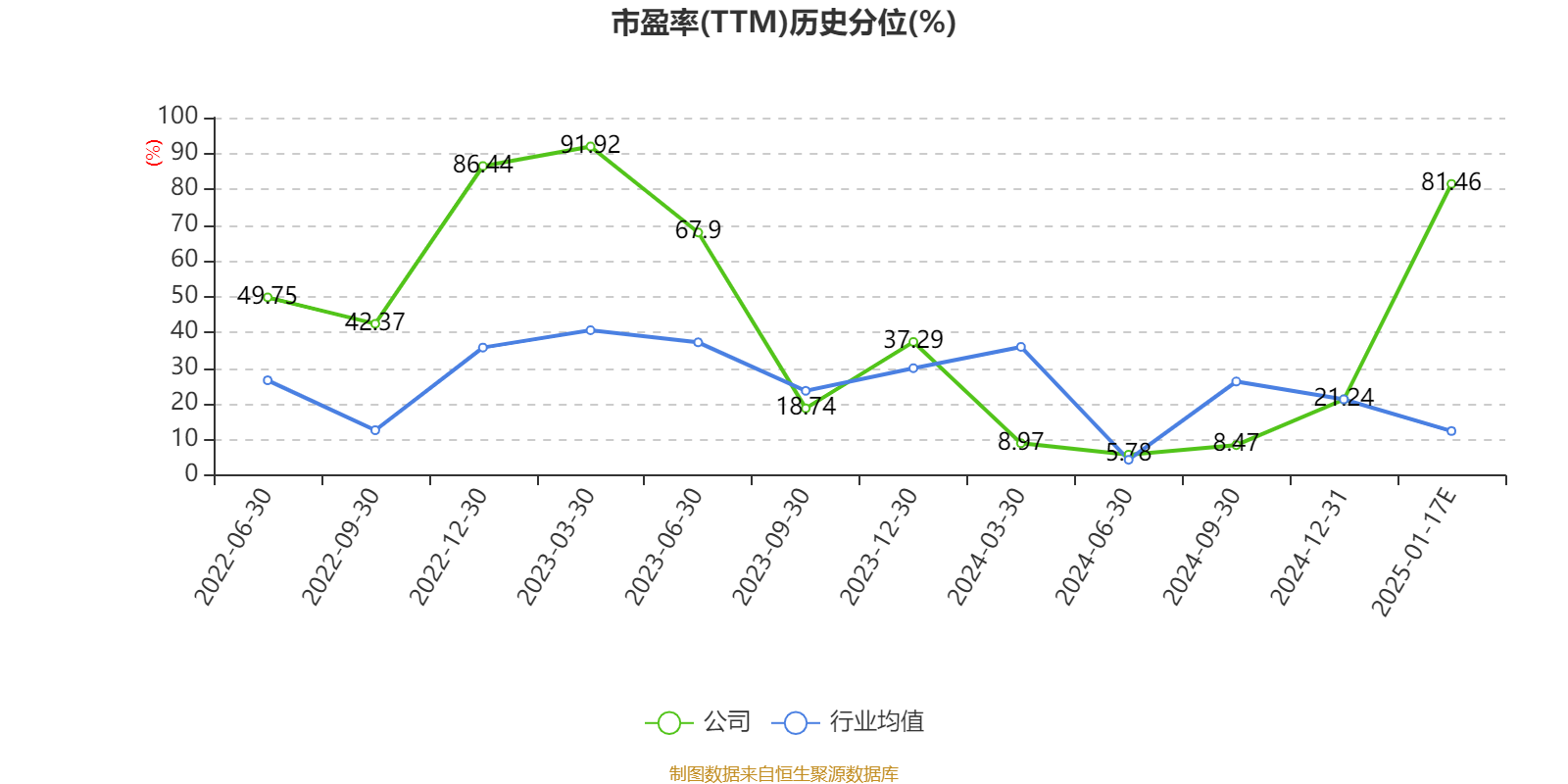 以本次披露业绩预告均值计算,公司近年市盈率(TTM)图如下所示: