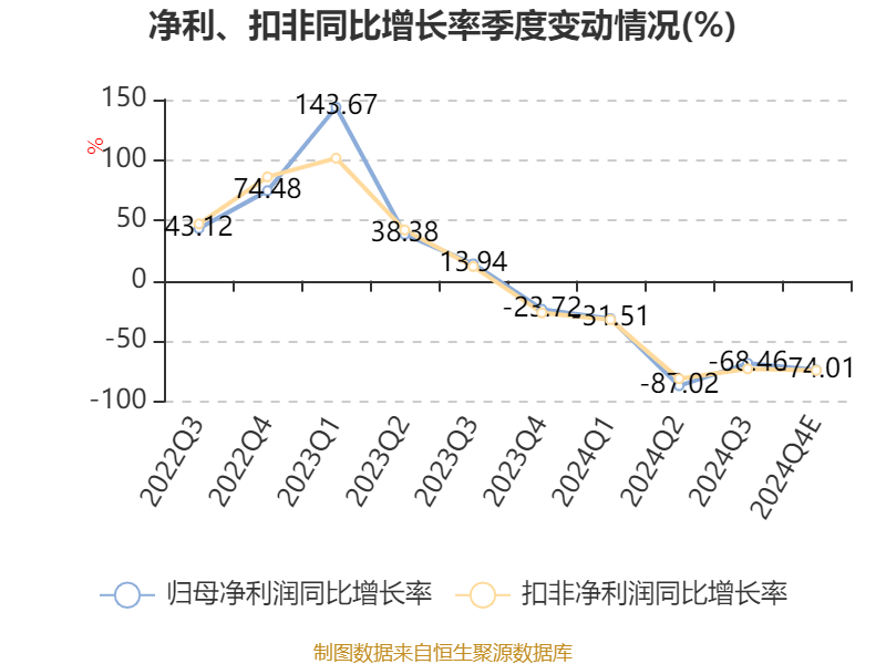 据公告,公司业绩变动原因为, 2024年市场及行业竞争加剧;医药改革政策持续推行,医保个账减少及统筹医保落地滞后、医保强监管等因素影响,行业营业收入增长停滞、利润承受下滑压力。2024年,公司整体营业收入增幅趋缓,无法覆盖门店费用的刚性增长,净利润较上年同期降幅较大。