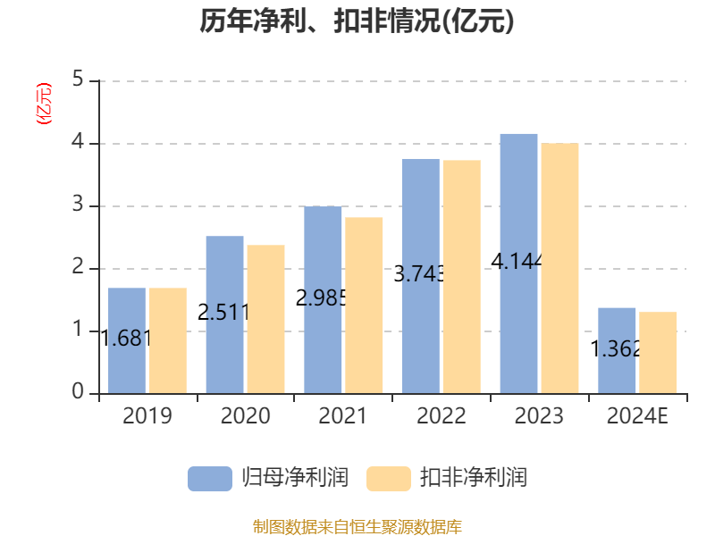 中证智能财讯健之佳(605266)1月17日晚间披露2024年度业绩预告,预计2024年归母净利润1.29亿元至1.43亿元,同比下降65.5%-68.78%;扣非净利润预计1.23亿元-1.36亿元,同比下降65.91%-69.15%。以1月17日收盘价计算,健之佳目前市盈率(TTM)约为24.05倍-26.58倍,市净率(LF)约1.25倍,市销率(TTM)约0.37倍。