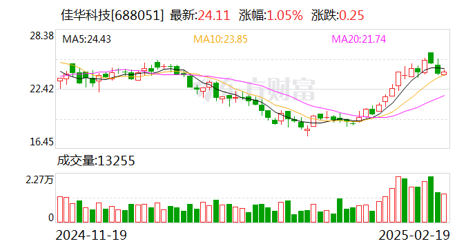 春节假期后,佳华科技在资本市场表现亮眼。2月5日至12日,股价从开盘价20.10元涨至收盘价24.46元,五日内涨幅达17.43%,投资者关注度显著提升。