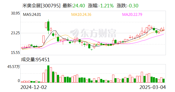 2024年前三季度,米奥会展实现收入4.25亿元,归母净利润6814万元。