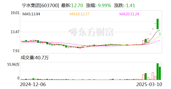 宁水集团(603700)今日跌停,全天换手率20.03%,成交额5.24亿元,振幅5.35%。龙虎榜数据显示,营业部席位合计净卖出1542.03万元。