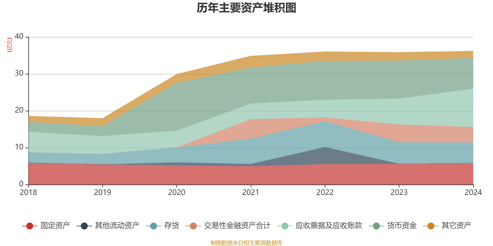 资产重大变化方面,截至2024年末,公司应收票据及应收账款较上年末增加47.66%,占公司总资产比重上升9.07个百分点;货币资金较上年末减少18.83%,占公司总资产比重下降5.62个百分点;交易性金融资产合计较上年末减少12.87%,占公司总资产比重下降1.85个百分点;存货较上年末减少5.34%,占公司总资产比重下降1.01个百分点。