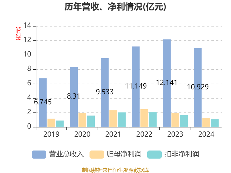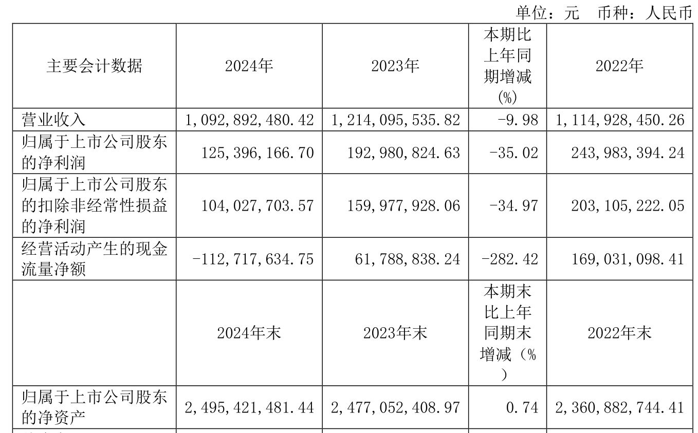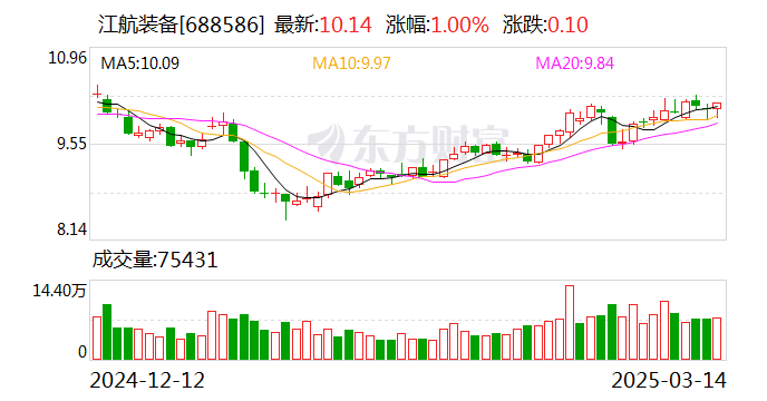 中证智能财讯江航装备(688586)3月17日披露2024年年度报告。2024年,公司实现营业总收入10.93亿元,同比下降9.98%;归母净利润1.25亿元,同比下降35.02%;扣非净利润1.04亿元,同比下降34.97%;经营活动产生的现金流量净额为-1.13亿元,上年同期为6178.88万元;报告期内,江航装备基本每股收益为0.16元,加权平均净资产收益率为5.32%。公司2024年度分配预案为:拟向全体股东每10股派现0.9元(含税)。