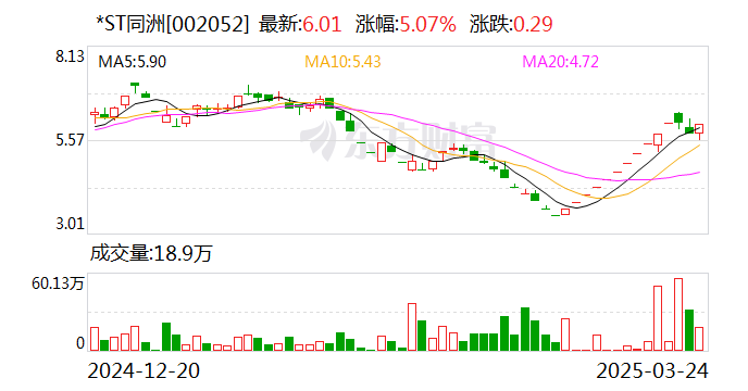 *ST同洲再度涨停,14个交易日内录得12个涨停,累计涨幅为70.74%,累计换手率为29.31%。截至10:39,该股今日成交量1726.91万股,成交金额1.01亿元,换手率2.32%。最新A股总市值达44.83亿元,A股流通市值44.83亿元。
