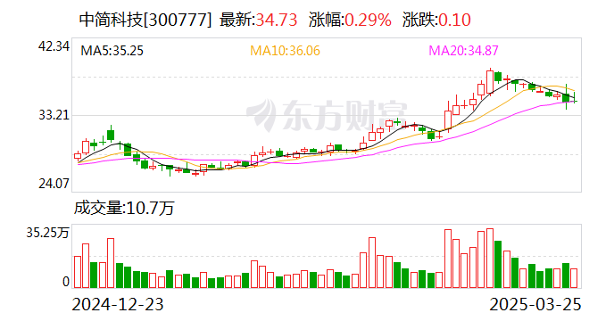 中简科技(300777)3月25日发布首季业绩预增公告,预计实现净利润为1.00亿元~1.14亿元,净利润同比增长68.79%~92.42%。