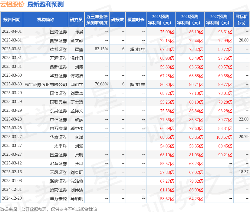 以下是详细的盈利预测信息: