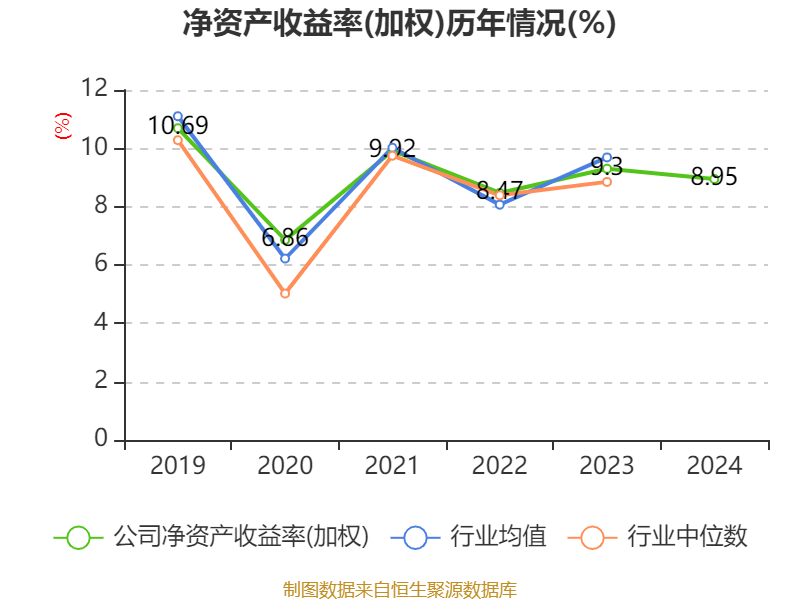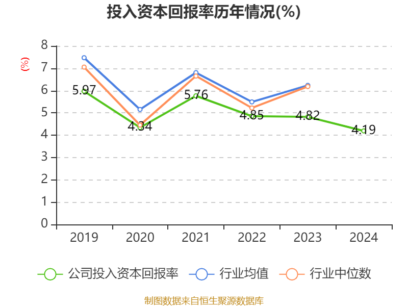 数据显示,2024年公司加权平均净资产收益率为8.95%,较上年同期下降0.35个百分点。公司2024年投入资本回报率为4.19%,较上年同期下降0.63个百分点。
