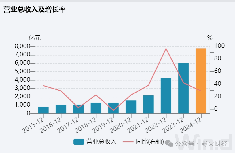 根据比亚迪(002594)3月24日晚间发布的2024年报,实现营收7771亿元,增长29%,比2023年42%增速略低,但考虑到在超过6000亿营收的规模上,这个增速还是相当惊人的。