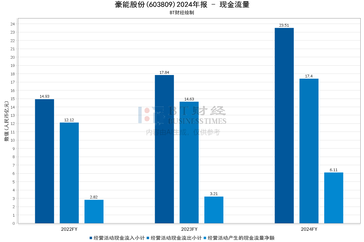 在现金流量方面,豪能股份2024年经营活动产生的现金流量净额为6.11亿元,同比增长90.36%。这主要由于营业收入增加以及现金流管理的优化。投资活动现金流出增加39.14%,主要用于购买结构性存款和固定资产建设。尽管筹资活动现金流量净额略有下降,但整体现金流状况依然稳健,为公司未来的持续发展提供了有力支持。