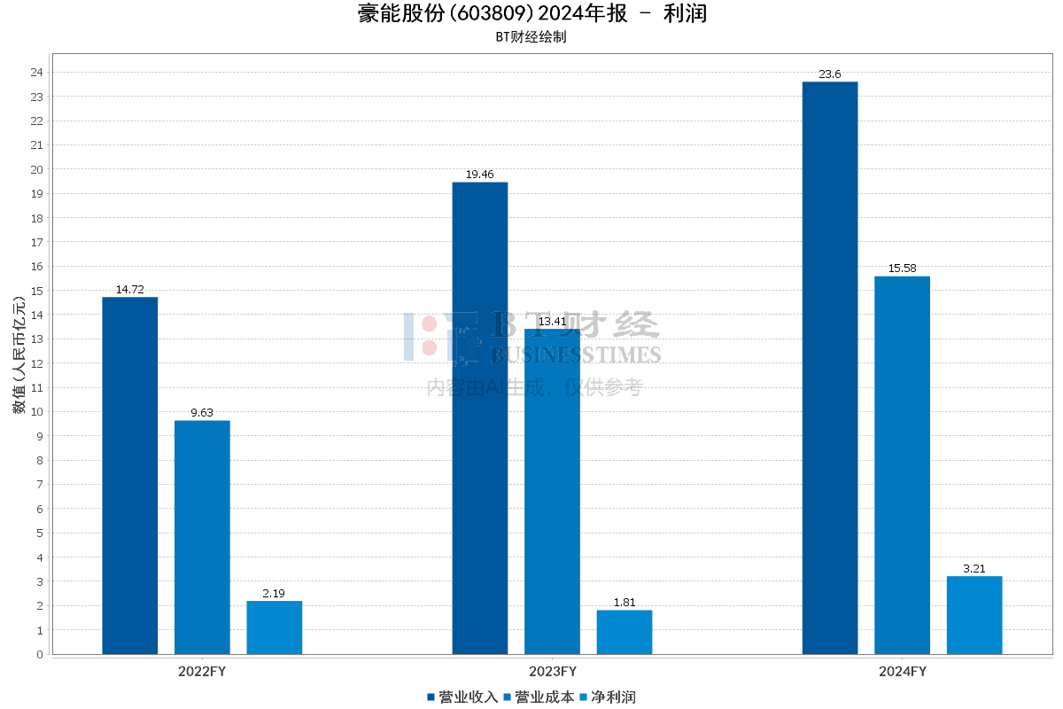 利润方面,豪能股份在2024年实现了显著增长。营业收入达到23.60亿元,营业成本为15.58亿元,毛利率提升至33.98%。净利润达到3.21亿元,净利率提升至13.58%。这主要得益于新能源汽车零部件业务的快速增长和航空航天零部件业务的持续扩张。此外,差速器产品的营业收入增长显著,达到72.80%,进一步推动了整体利润的提升。