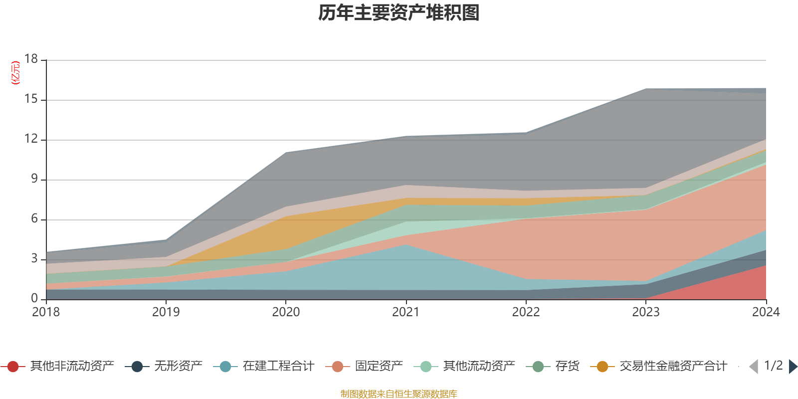 资产重大变化方面,截至2024年末,公司货币资金较上年末减少53.78%,占公司总资产比重下降25.19个百分点;其他非流动资产较上年末增加3193.97%,占公司总资产比重上升15.55个百分点;在建工程合计较上年末增加502.12%,占公司总资产比重上升7.82个百分点;固定资产较上年末减少8.04%,占公司总资产比重下降2.78个百分点。