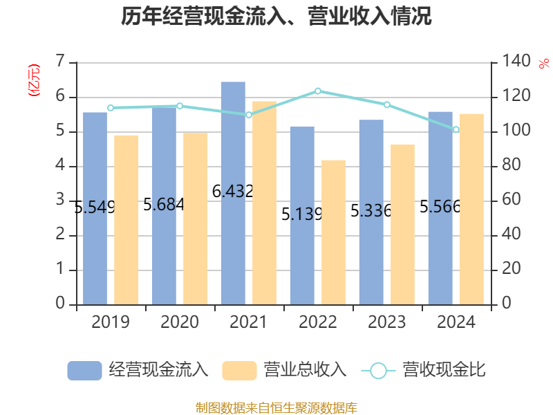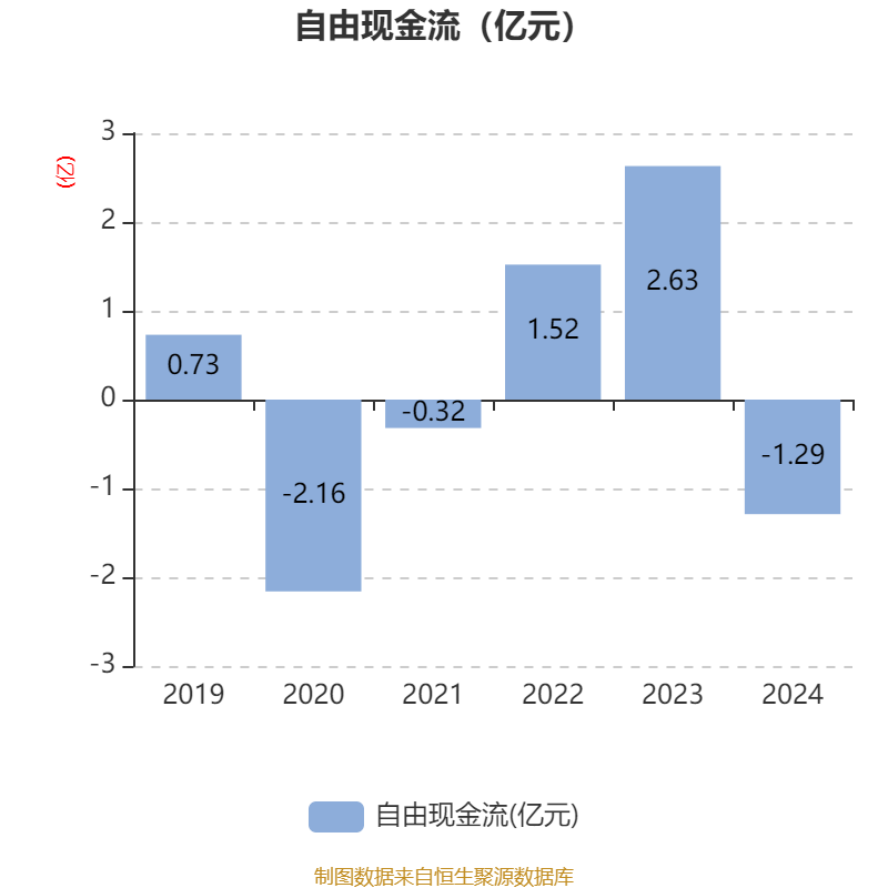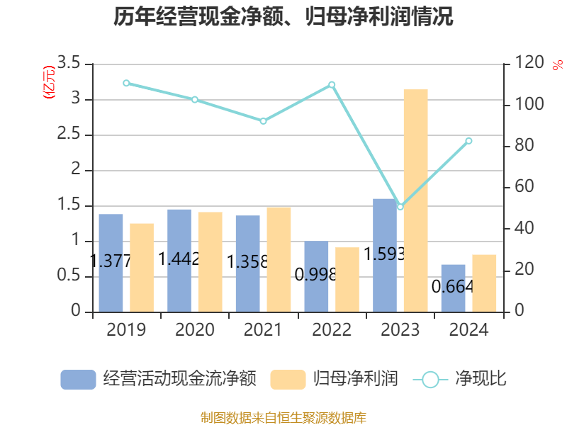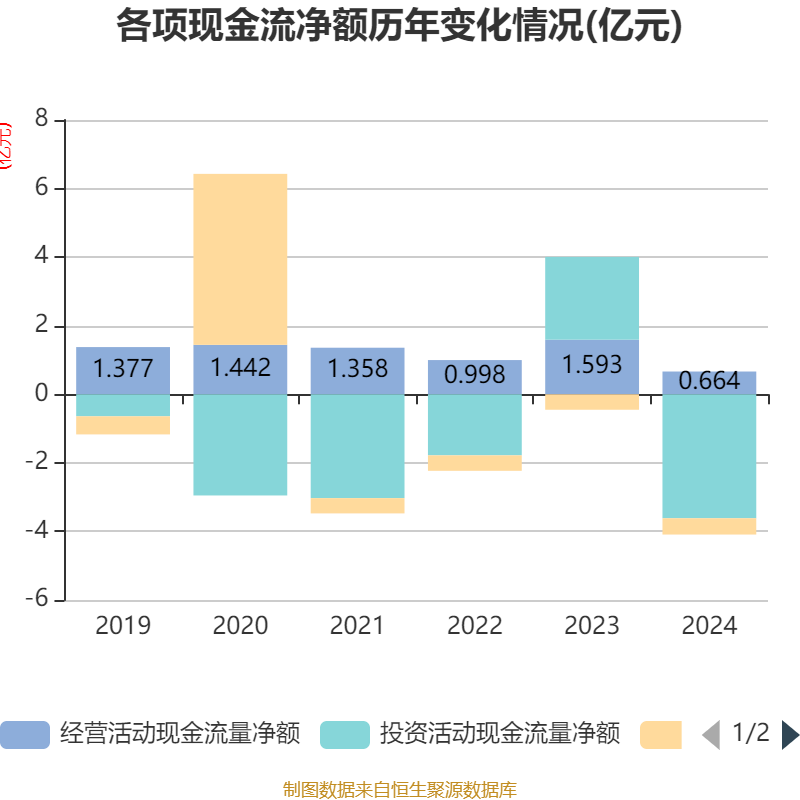 截至2024年,公司经营活动现金流净额为6643.91万元,同比下降58.28%;筹资活动现金流净额-4763.24万元,同比减少253.24万元;投资活动现金流净额-3.61亿元,上年同期为2.41亿元。