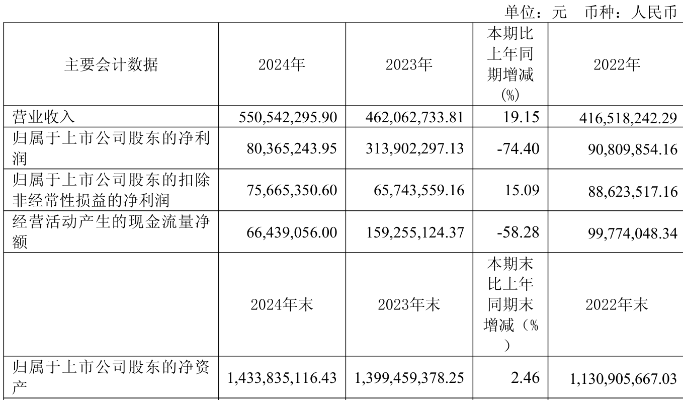中证智能财讯众望布艺(605003)4月24日披露2024年年度报告。2024年,公司实现营业总收入5.51亿元,同比增长19.15%;归母净利润8036.52万元,同比下降74.40%;扣非净利润7566.54万元,同比增长15.09%;经营活动产生的现金流量净额为6643.91万元,同比下降58.28%;报告期内,众望布艺基本每股收益为0.73元,加权平均净资产收益率为5.69%。公司2024年度分配预案为:拟向全体股东每10股派现4.1元(含税)。