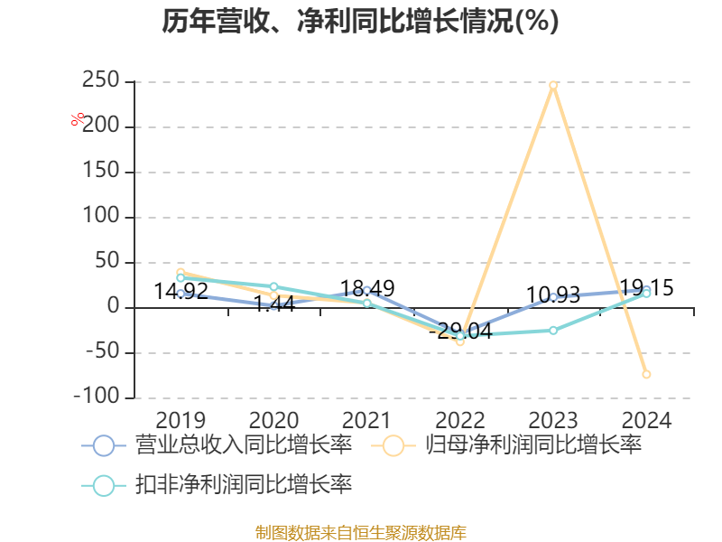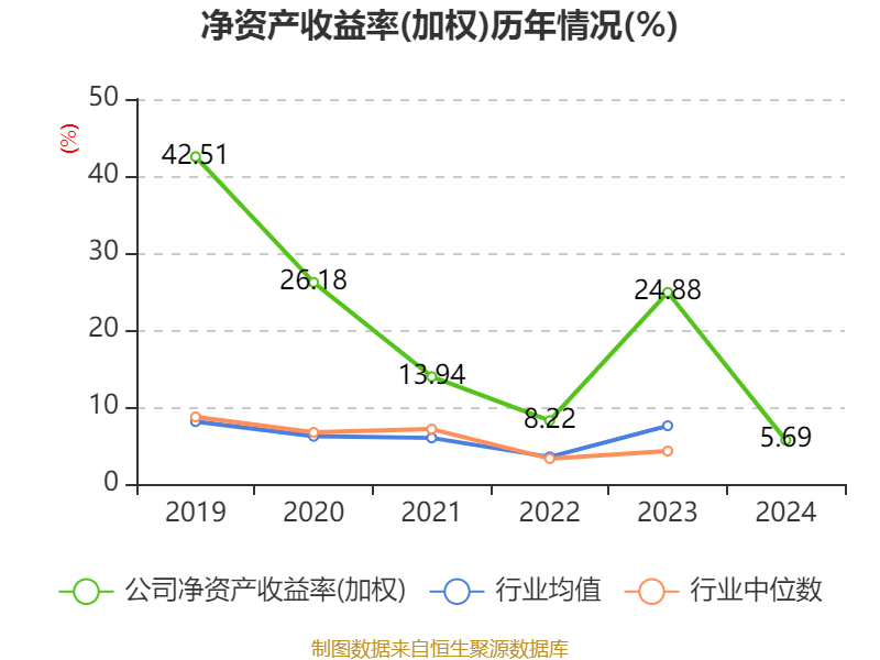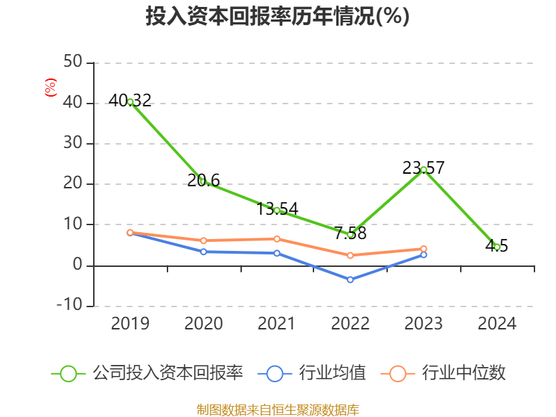 数据显示,2024年公司加权平均净资产收益率为5.69%,较上年同期下降19.19个百分点。公司2024年投入资本回报率为4.5%,较上年同期下降19.07个百分点。
