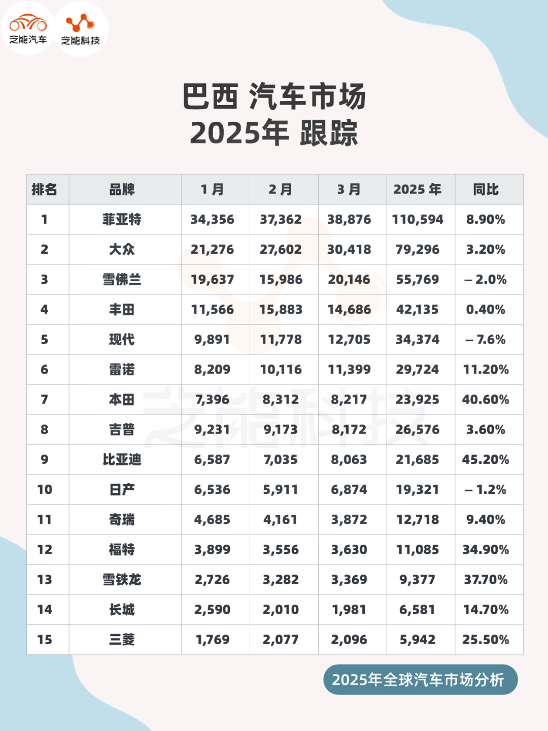 原文标题 : 南美洲车市|巴西2025年3月:比亚迪创历史新高