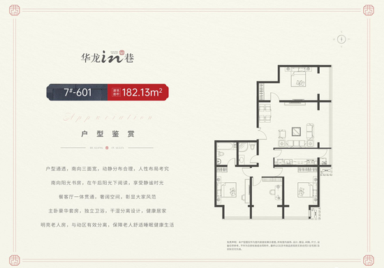 182平方米四居户型中,华龙in巷虽做了双主卧套设计,三卧朝南,但两个卫生间都是暗卫,且主卧无独立无卫生间;厨房空间过于窄小,餐厨客动线流畅性较差。此外,对于一个总价近2000万元的产品而言,无独立玄关也是一大硬伤。