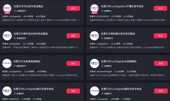 不过授权店铺的批量涌现、门店内容能力参差不齐,比如在抖音上就有许多粉丝量不及万人的小型授权店铺,由此可推断拉夏贝尔授权审核并没有想象中严格。这种广撒网策略覆盖面确实够广,能给消费者提供充足选择、壮大品牌声势,但也会给品控、口碑带来隐患。