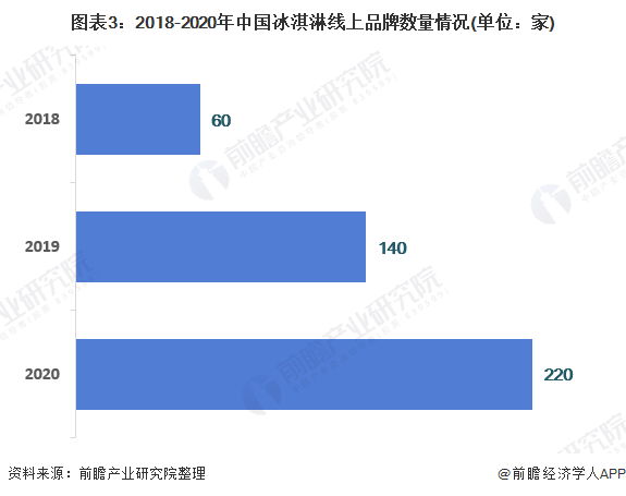 此外,中国冰淇淋市场还有很大的上涨空间。目前中国年人均消费冰淇淋还不到3公斤,这个数据不到美国年人均的八分之一,相当于日本的四分之一。 这使得国内未来冷饮的市场前景被普遍看好。根据第一财经商业数据中心发布的报道显示,2018年我国线上冰淇淋品牌仅有60余家,到了2019年,已增至150家。