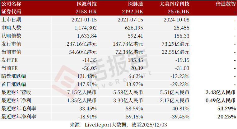 同行业IPO可比公司:医渡科技、医脉通、太美医疗科技