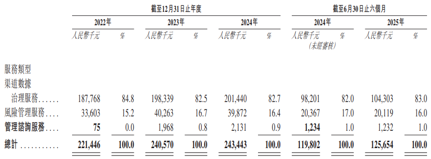 于往绩记录期间,公司的收入主要来自三大类服务,即渠道数据治理服务、风险管理服务以及管理咨询服务。