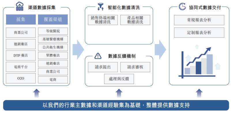 公司基于海量的数据资产、强大的数据管理能力和稳固的客户基础,围绕医疗健康企业产品全生命周期,提供数据赋能解决方案,有效推动企业数字化转型,实现流通数字化死循环管理,提高企业市场竞争力和运营管理效率。