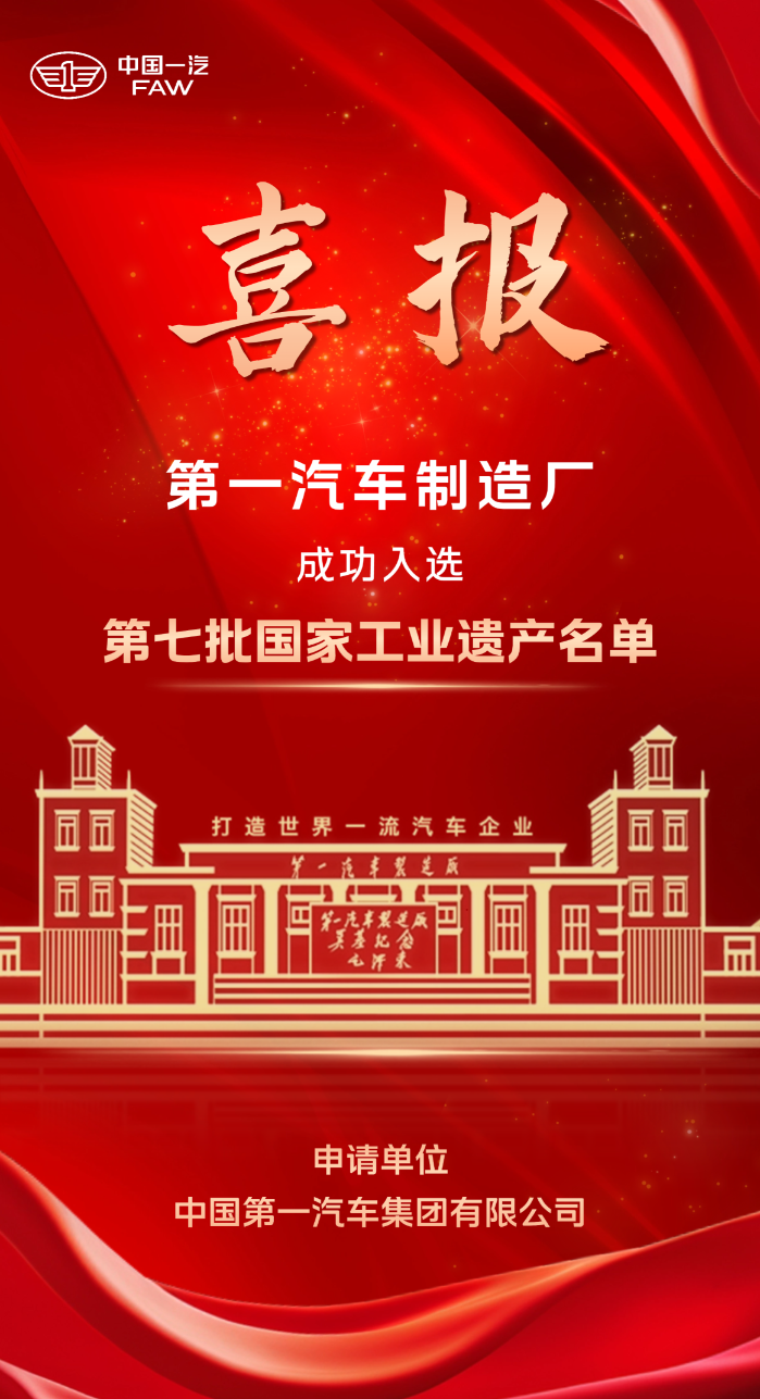 近日,工业和信息化部发布《关于公布第七批国家工业遗产及通过复核的第三批国家工业遗产名单的通知》,“第一汽车制造厂”成功入选第七批国家工业遗产名单。