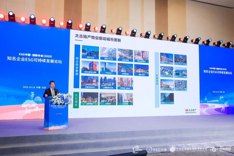 太古地产中国内地设施统筹及可持续发展总经理、太古地产健康与安全促进会主席许志忍分享了“社区、建筑、自然三位一体的ESG共生体系”,详细介绍了太古地产创新衍变,引领地产行业可持续发展的具体案例实践。