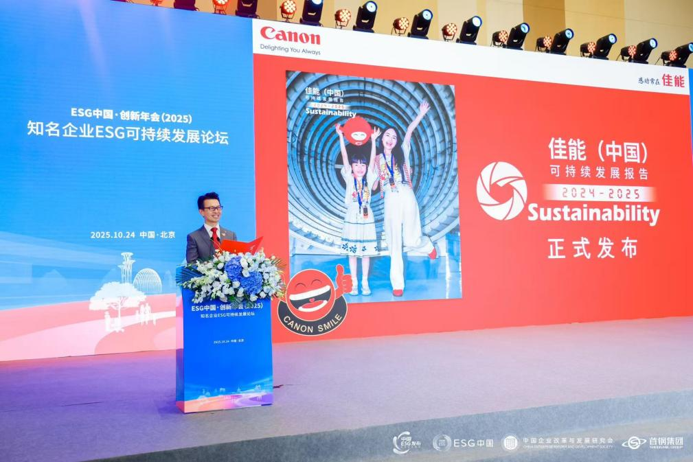 佳能(中国)企业营销战略本部高级总经理金子裕介在演讲中回顾了佳能在中国从CSR到可持续发展战略的升级之路,并隆重宣布《佳能(中国)2024-2025可持续发展报告》正式发布。佳能(中国)与中智股份在人力资源领域的稳定合作为ESG实践提供了坚实基础。