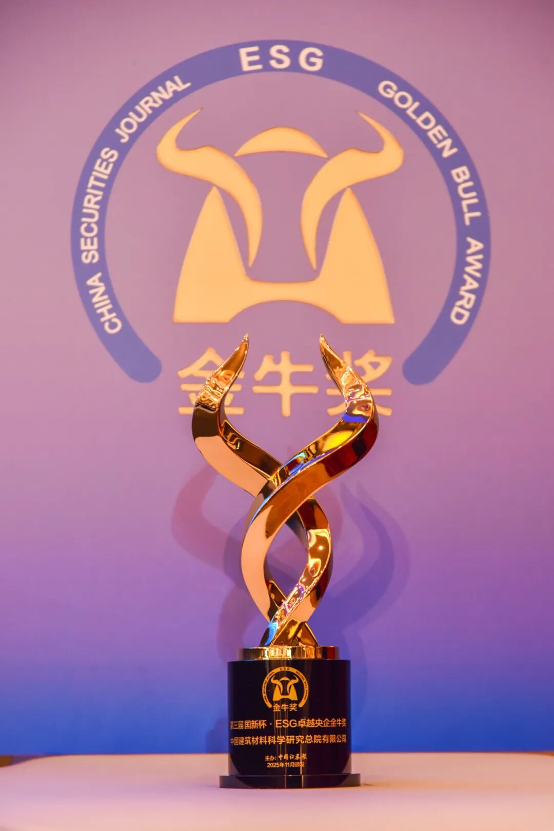 近日,由新华社旗下《中国证券报》与央企中国国新集团联合主办的“国新杯・ESG金牛奖”评选结果正式揭晓。中国建材总院凭借在环境、社会、治理(ESG)领域的扎实实践与规范信息披露,成功入选“ESG卓越央企金牛奖”。