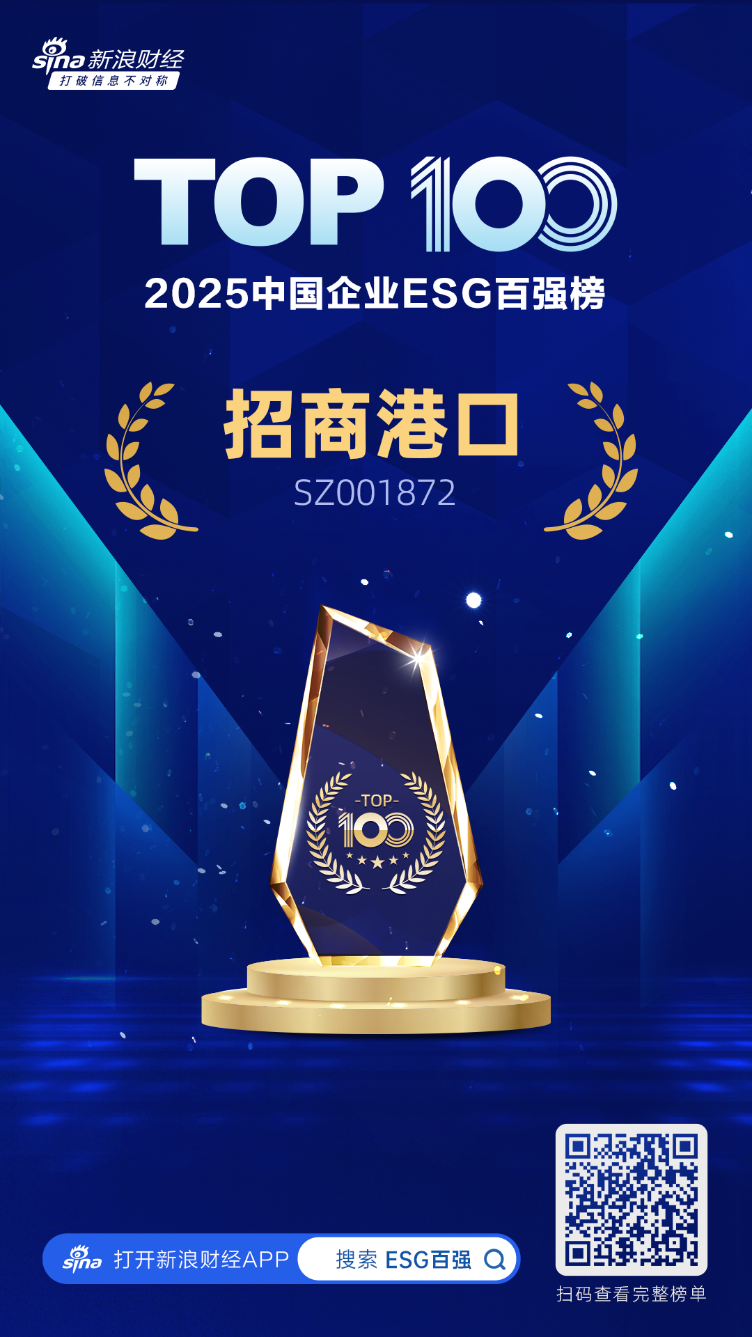 招商港口在环境、社会、公司治理领域开展了大量工作,积累了丰富的创新实践与扎实的落地成果。凭借在ESG各领域的卓越表现,招商港口成功入选本次新浪财经“2025 中国企业 ESG 百强”榜单,并位列第84名。