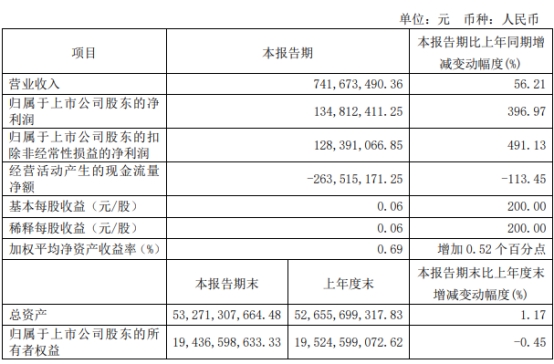 2023年第一季度,华创阳安营业收入为7.42亿元,同比增长56.21%;归属于上市公司股东的净利润为1.35亿元,同比增长396.97%;归属于上市公司股东的扣除非经常性损益的净利润为1.28亿元,同比增长491.13%;经营活动产生的现金流量净额为-2.64亿元,同比减少113.45%。